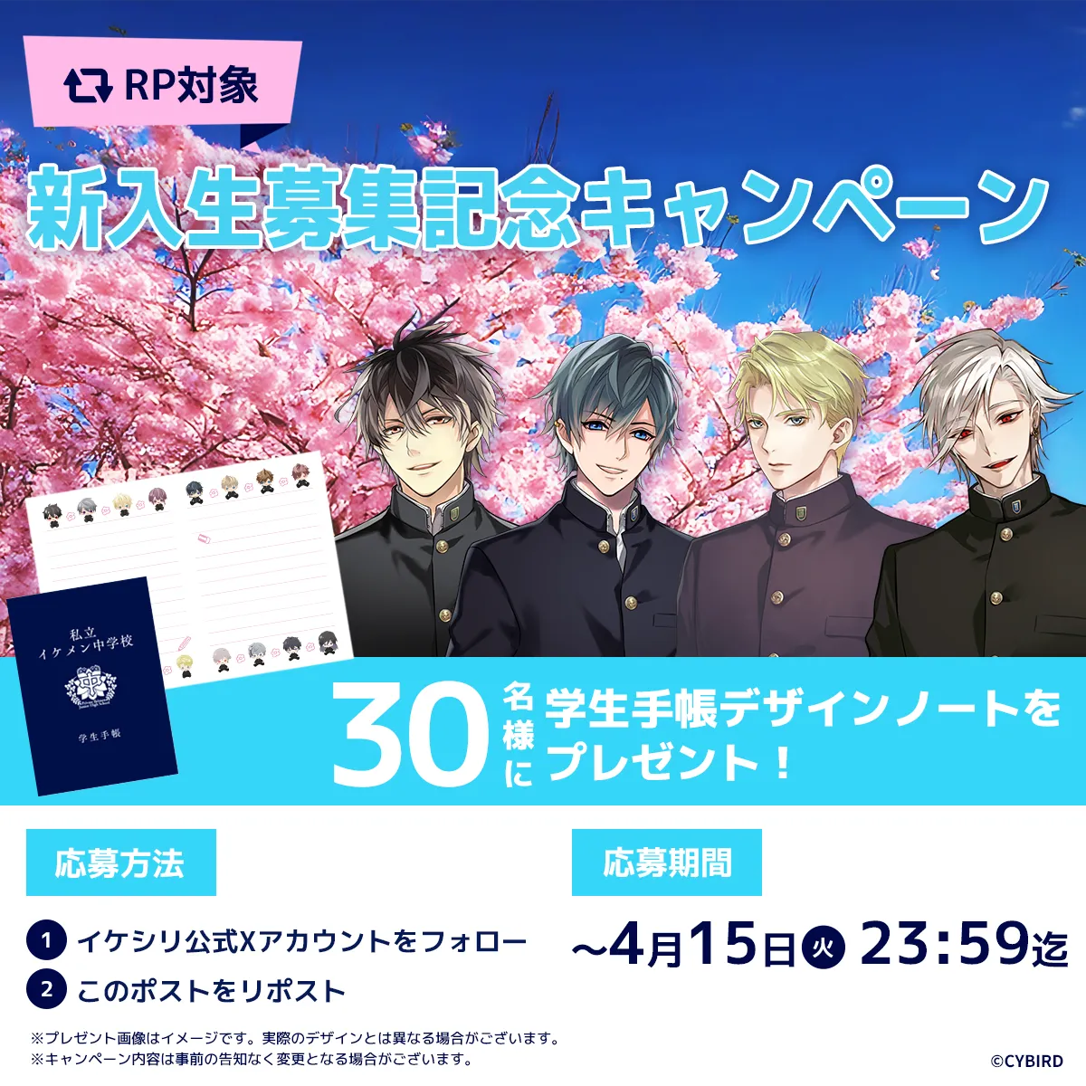 私立イケメン中学の新入生募集を記念し、学生手帳デザインノートを30名様にプレゼント!