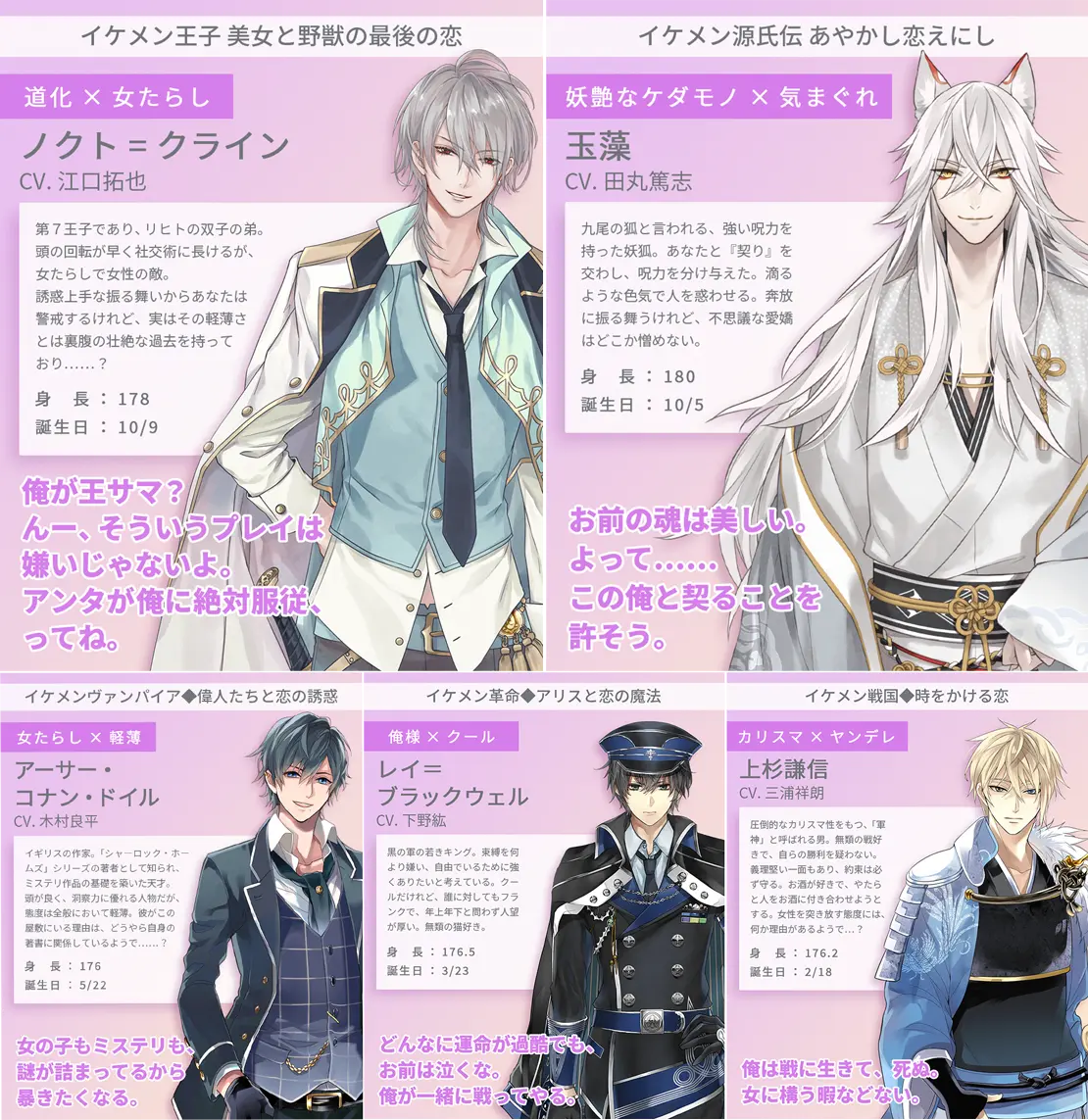 本アプリ限定ボイスを多数収録し、大好きなキャラクターと毎日甘い時間をお過ごし頂けます。