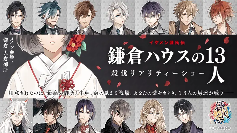『イケメン源氏伝 あやかし恋えにし』では、「殺伐リアリティーショー 鎌倉ハウスの13人」の開催が決定しました。13人の独身男性たちが、あなたの心を勝ち取るために鎌倉・大倉御所に集結。金・権力・知力・筋力……あらゆるものを駆使してあなたを逢瀬に誘いながら、命懸けの戦いを繰り広げていきます。