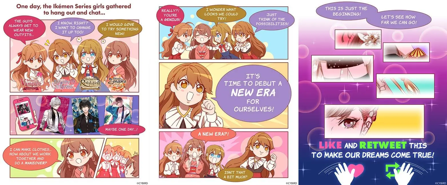 今回のキービジュアルは、「イケメンシリーズ」初となる主人公キャラクターが中心となります。4月1日のエイプリルフールに英語版「イケメンシリーズ」のTwitterで公開され、大反響だったコミックが発端となっており、主人公たちの願いが現実となった姿をお楽しみください。新規衣装をまとった各タイトルの男性キャラクターも、特設サイトや英語版「イケメンシリーズ」の公式Twitterにて順次解禁していきますので、ぜひ注目ください。