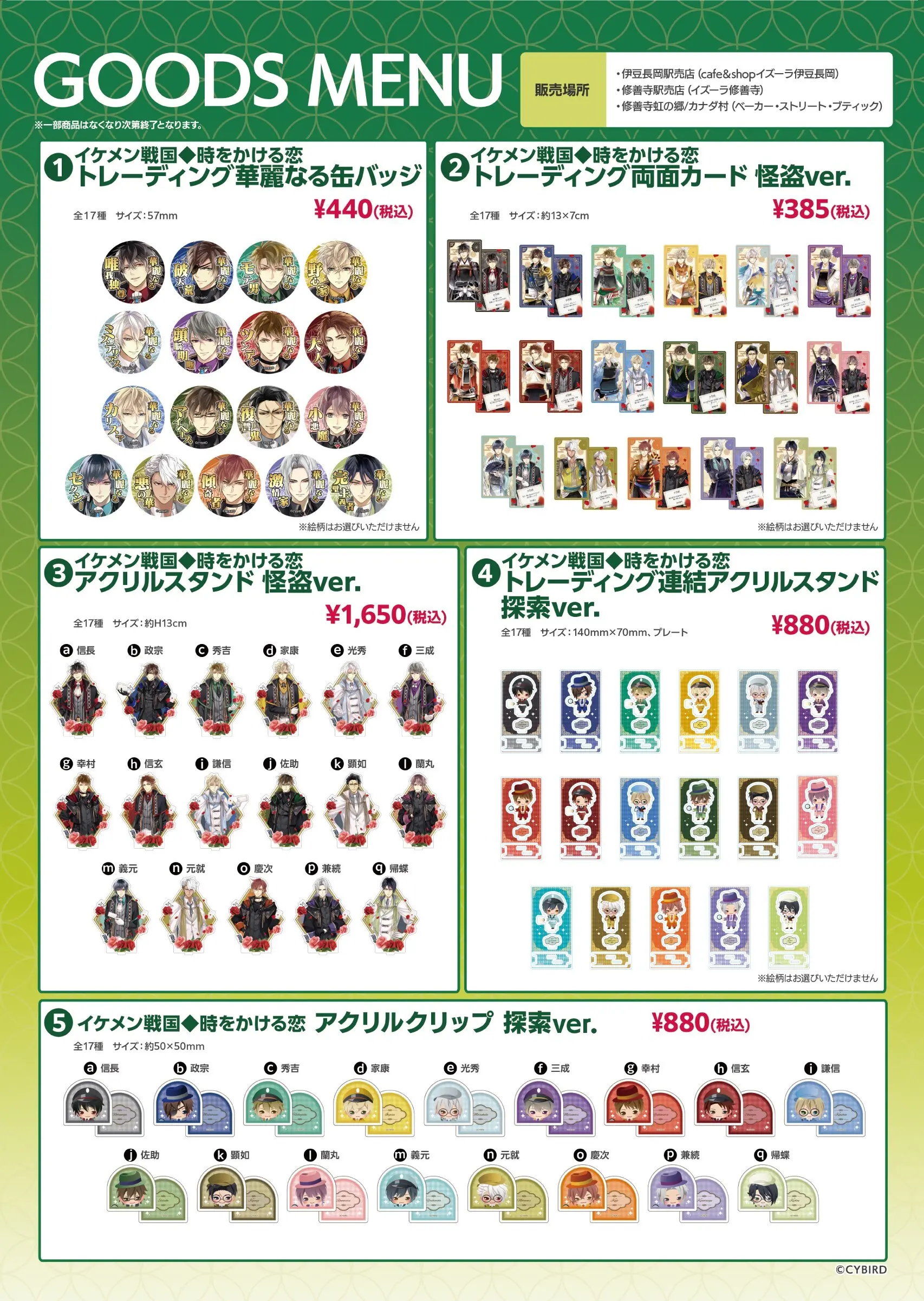 「イケメン戦国2023総選挙×修善寺虹の郷 コラボスタンプラリー」の実施を記念して、イケメン戦国◆時をかける恋』のグッズを販売します♪