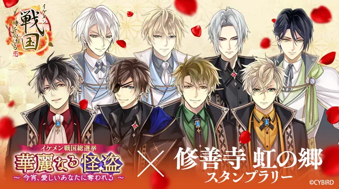 2023年11月23日(木・祝)から、イケメン戦国2023総選挙「華麗なる怪盗~今宵、愛しいあなたに奪われる~」の総獲得票数10,590,000票突破を祝して、静岡県伊豆「修善寺 虹の郷」とのコラボスタンプラリーの実施が決定しました!