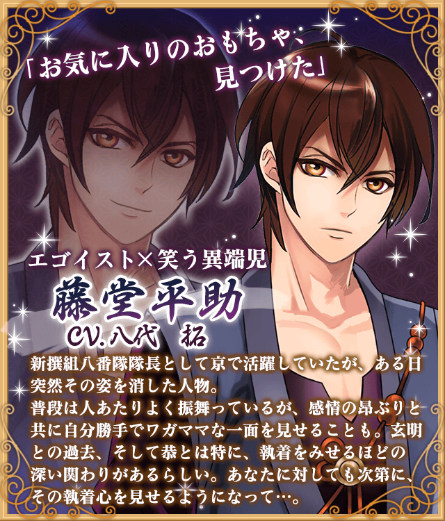 新選組八番隊隊長として京で活躍していたが、ある日突然その姿を消した人物。