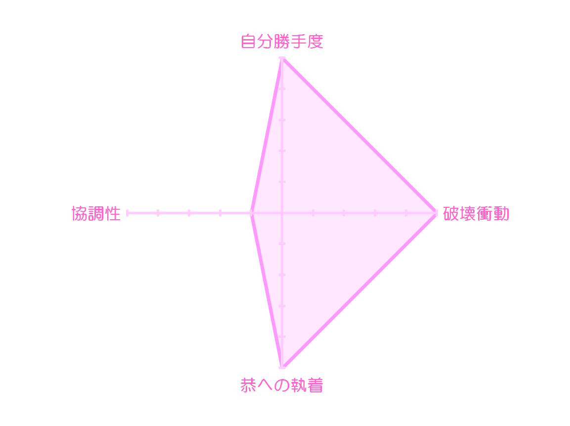 普段は人あたりよく振る舞っているが、感情の昂ぶりと共に自分勝手でワガママな一面を見せることも。