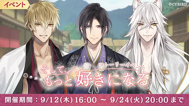 TOPページタイトル紹介イケメン源氏伝 あやかし恋えにしNewsお知らせアプリ内初のストーリーイベント「そして、もっと好きになる」を開催! 2019/09/12 アプリ内初のストーリーイベント「そして、もっと好きになる」を開催! 「イケメン源氏伝 あやかし恋えにし」は、アプリ内初となるストーリーイベント「そして、もっと好きになる」を2019年9月12日(木)より開催します。 ◆ストーリーイベント「そして、もっと好きになる」とは 全3話構成で、物語券を消費せずにストーリーを読むことができる期間限定のイベントです。 本ストーリーイベントでは、恋仲になったばかりの源頼朝・武蔵坊弁慶・玉藻との甘いストーリーを期間限定でお読み頂けます。 ▲本イベント限定の特典アバターやカードも登場。是非ご参加ください! 開催期間:2019年9月12日(木)16:00~9月24日(火)20:00