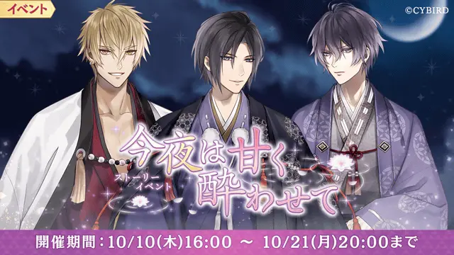 TOPページタイトル紹介イケメン源氏伝 あやかし恋えにしNewsお知らせアプリ内で源義経(CV:石田 彰)が初登場となるストーリーイベントを開催! 2019/10/10 アプリ内で源義経(CV:石田 彰)が初登場となるストーリーイベントを開催! 「イケメンシリーズ」の7周年記念作品「イケメン源氏伝 あやかし恋えにし」は、アプリ内で源義経(CV:石田 彰)が初登場となるストーリーイベント「今夜は甘く酔わせて」を2019年10月10日(木)より開催します。 ◆ストーリーイベント「今夜は甘く酔わせて」とは 全3話構成で、物語券を消費せずにストーリーを読むことができる期間限定のイベントです。 本ストーリーイベントでは、武蔵坊弁慶・源頼朝・源義経とほろ酔い気分で甘い時間を過ごせるイベント限定ストーリーを期間限定でお読み頂けます。 ▲本イベント限定の特典アバターやカードも登場。是非ご参加ください! 開催期間:2019年10月10日(木)16:00~10月21日(月)20:00