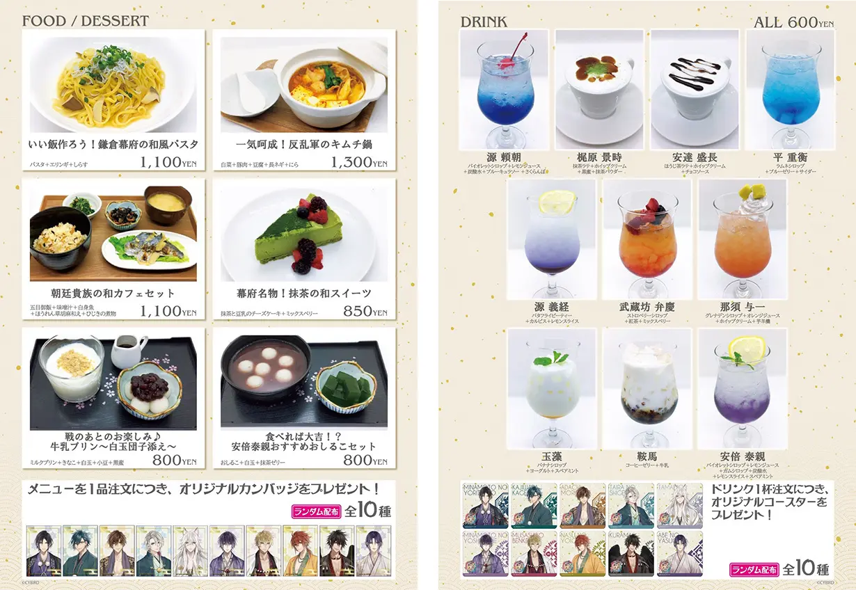 フードまたはデザートをご注文のお客様には、オリジナル特典を1点プレゼント!