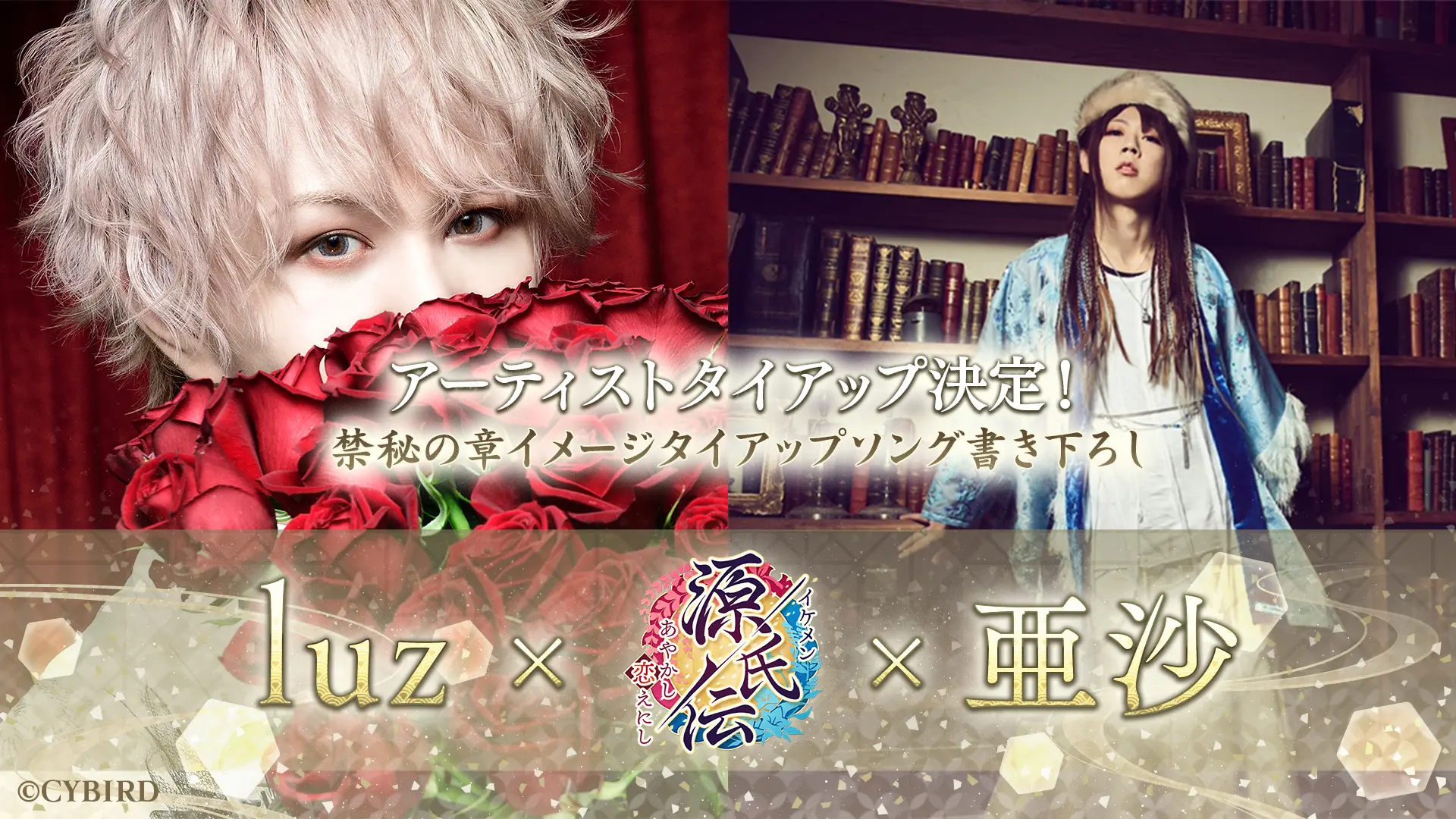 インターネットのミュージックシーンを中心に活躍するluz(ルス)さんとのタイアップも決定! 和楽器バンドのベーシストであり、シンガーソングライター、ボカロP としても活動している 亜沙(あさ)さんの書き下ろしの楽曲によるコラボレーションが、実現しました。今回のタイアップソングである、「紡縁 -bouen- feat. 亜沙」と、「禁秘の章~新たなる恋えにし~」をイメージしたミュージックビデオが12月4日(金)にアプリ内で同時初解禁されます。