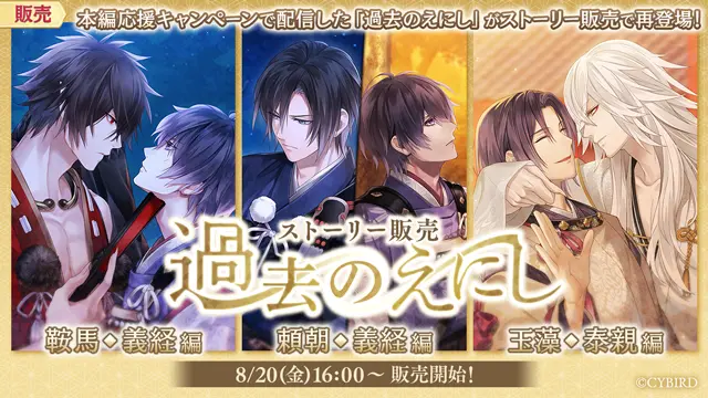 以前の本編応援キャンペーンで配信した、彼らの過去を深堀りした「過去のえにし」が、8月20日(金)より常設コーナーとなって再登場します。初回の販売は「鞍馬・義経編」、「頼朝・義経編」、「玉藻・泰親編」の3本です。