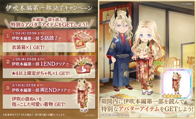 この他にも、「伊吹」本編第一部配信を記念したキャンペーンを多数実施中です。詳細は、アプリ内特設ページをご覧ください。