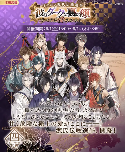 ■四周年記念「イケメン源氏伝 総選挙 彼のダークな裏の顔~すべては愛のために~」開催!