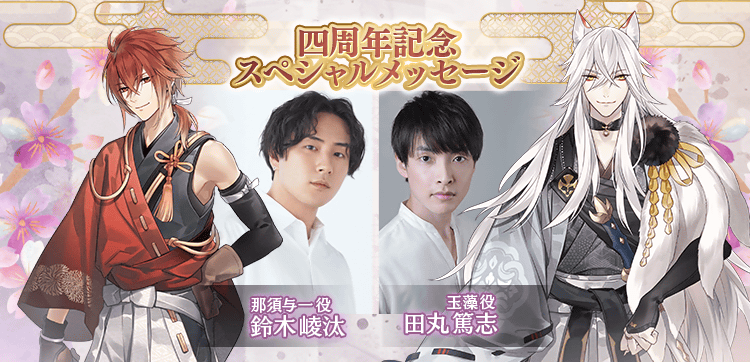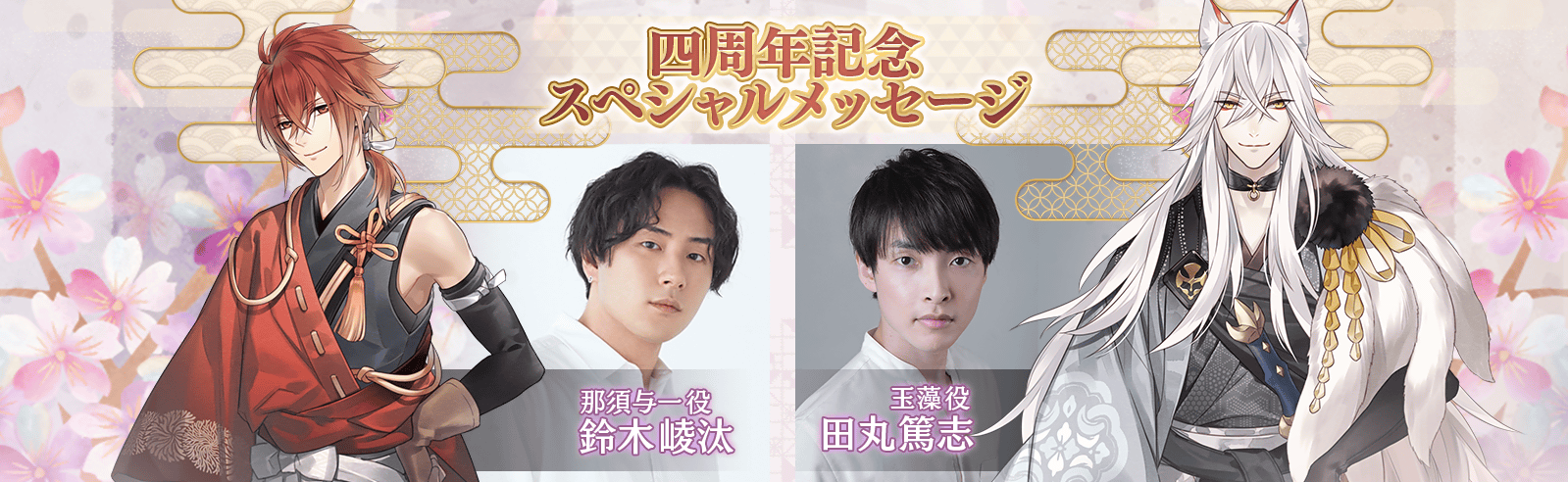 - 「イケメン源氏伝」4周年おめでとうございます!!那須与一の声を担当させていただています、鈴木崚汰です。