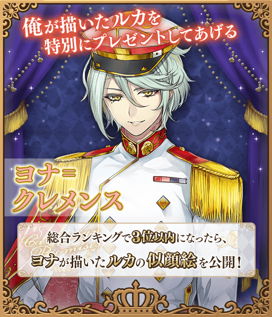 ヨナ 最終結果 ◆総合ランキング:3位 票数:752,861票 ◆セクシー部門:4位 票数:353,237票 ◆ピュア部門:3位 票数:275,424票 応援ツイート 下記のボタンから、彼に「お疲れ様」メッセージをツイートしよう! ツイートする 総選挙TOPへ 出場キャラクター 最終得票数や公約内容をチェックしよう! ランスロット ヨナ エドガー ゼロ カイル レイ シリウス ルカ フェンリル セス ハール ロキ ブラン オリヴァー