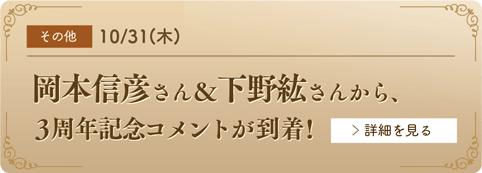 岡本信彦さん&下野紘さんから3周年記念コメントが到着!