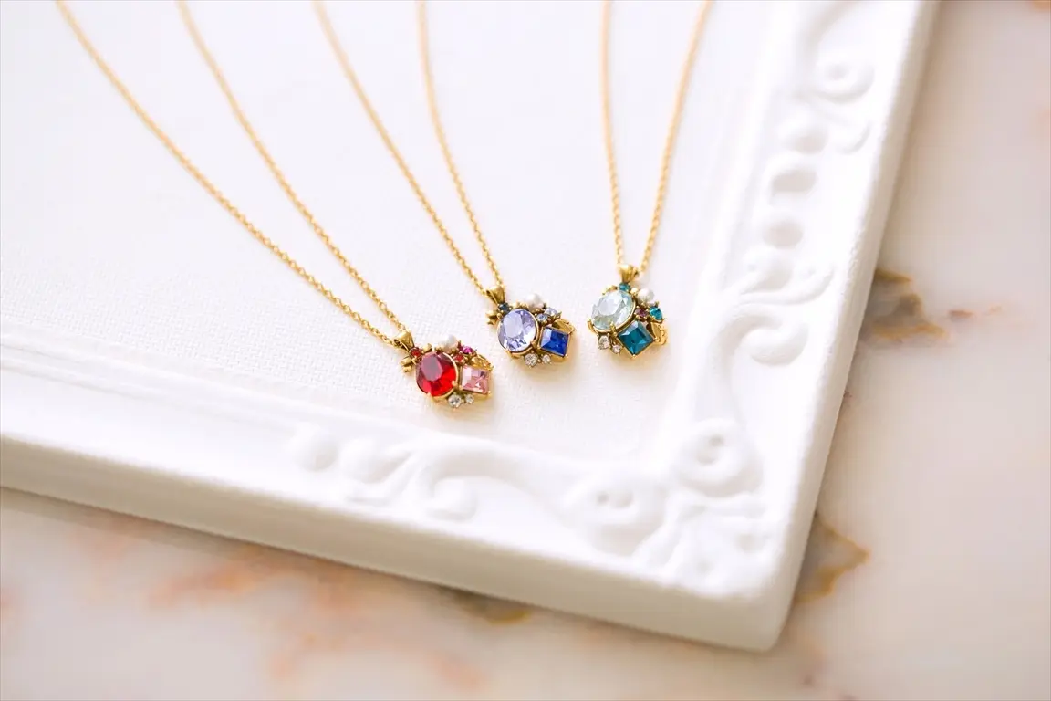 レイ、シリウス、ランスロットのイメージカラーとネームをビジューの中に詰めた可愛さと華やかさに溢れた特別なネックレス。