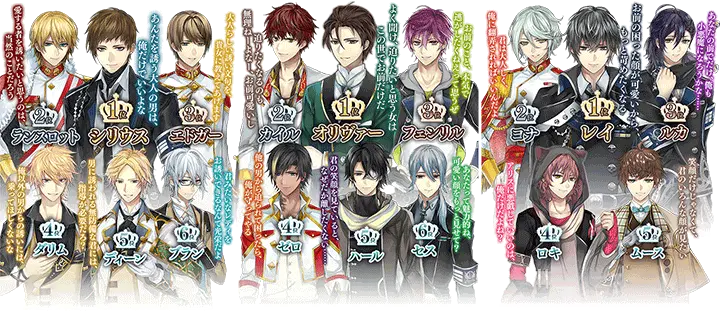 総投票数6,688,558票のうち、栄えある1位を獲得したのは、投票数892,763票を獲得した、黒のキング レイ=ブラックウェル(CV:下野 紘)が、昨年、一昨年に引き続き見事3連覇を果たし、「小悪魔な彼からもてあそばれ部門」でも1位に輝きました。「アダルトな彼から誘われ部門」では、シリウス=オズワルド(CV.諏訪部 順一)が1位に、総合順位でも2位を獲得し、こちらも昨年同様の順位となりました。「天才肌の彼から迫られ部門」1位は、今年4月11日に待望の本編が配信されたオリヴァー=ナイト(CV.濱野 大輝)で、総合順位でも昨年の12位から5位へと大躍進を果たし、人気の急上昇が順位に反映された結果となりました。