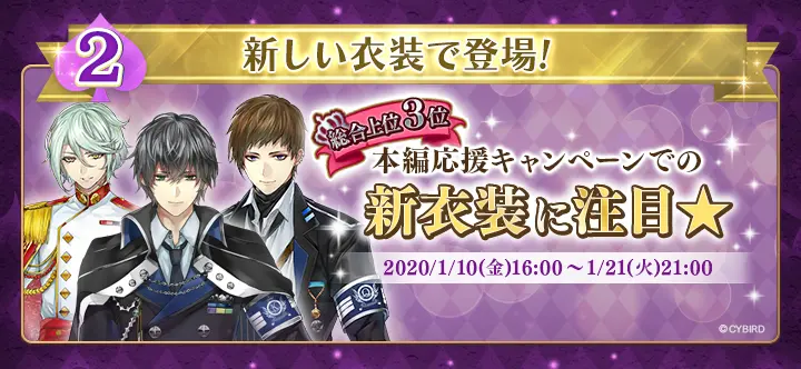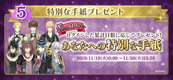 今年6月に開催したイケメン革命の全17名のキャラクター人気投票イベント「クレイドルAward2019~ご指名は俺ですか?~」で総合順位に応じた公約を順次実施します。公約実施に伴いアプリ内では本日11月15日(金)の16:00より特設ページがオープンしました。