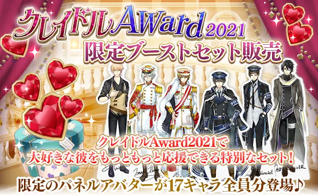 「クレイドルAward2021~抱かれたい男NO.1決定戦~」では、彼らの順位に応じて、特別グッズ販売やアプリ内の特別イベントを開催します。