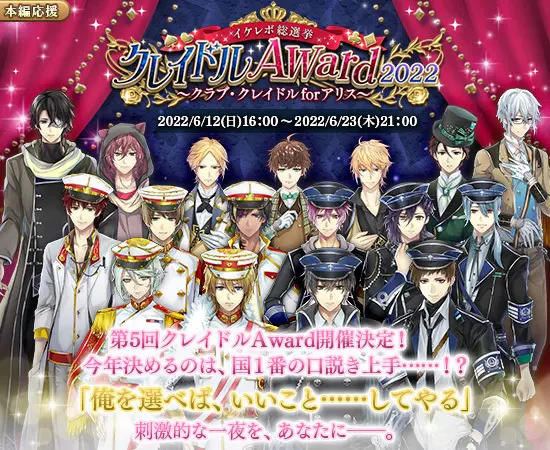 ゲーム内にて本編応援キャンペーン「クレイドルAward2022~クラブ・クレイドルforアリス~」を開催中です。