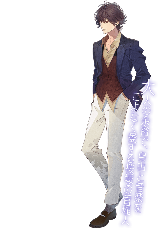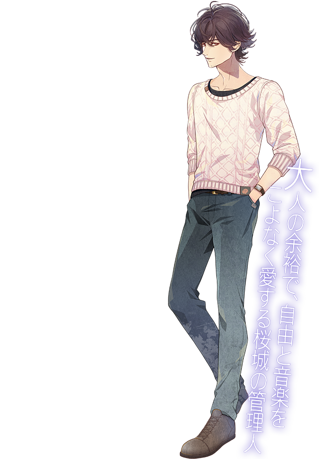 シェアハウス「桜城」のオーナー兼管理人、そして秘密の会員制ライブ「Own The Night」の主催者でもある。かつては実業家だったが、現在は資産家、投資家として基本的には家にいる。みんなに美味しい料理を振る舞うのはもはや趣味。昔も今も音楽は自由だという考えで、若者たちを支援している。