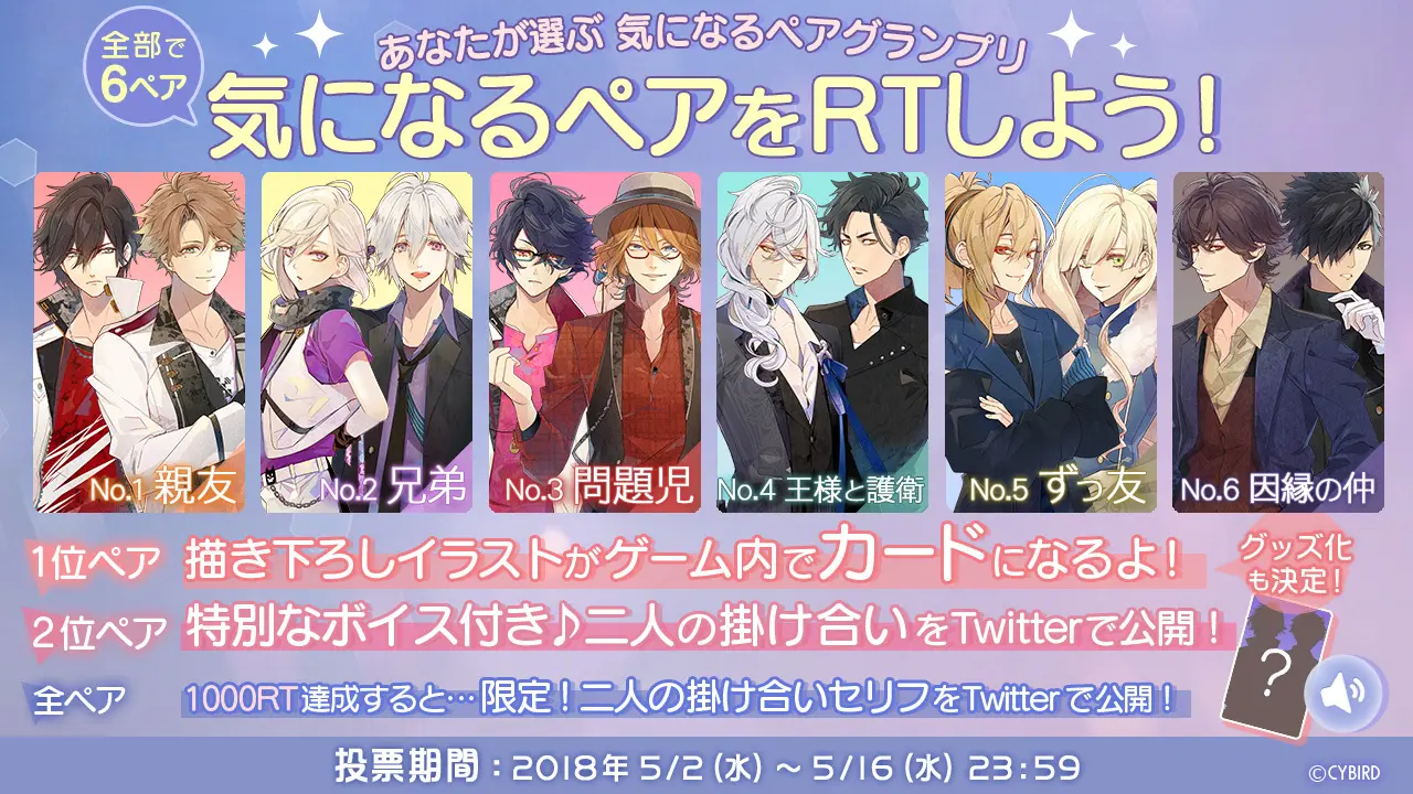 全ペア:1000RT達成で各ペアの掛け合いセリフをTwitterで公開