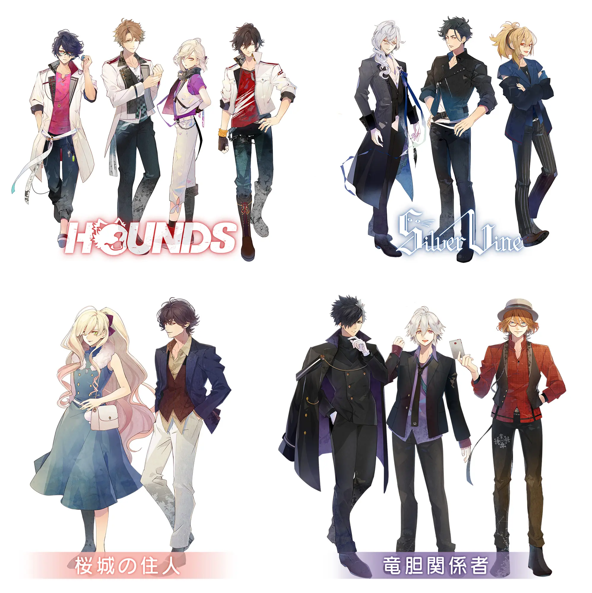 本アプリに登場する2つのバンドである「HOUNDS」(ハウンズ)と「SilverVine」(シルバーヴァイン)、そして彼らが住まうシェアハウス「桜城」の住人たち、さらには音楽を規制する側の音楽統制局「竜胆」関係者を合わせて、全12名のキャラクターボイスを豪華キャスト陣が演じ、主題歌を歌い上げます。