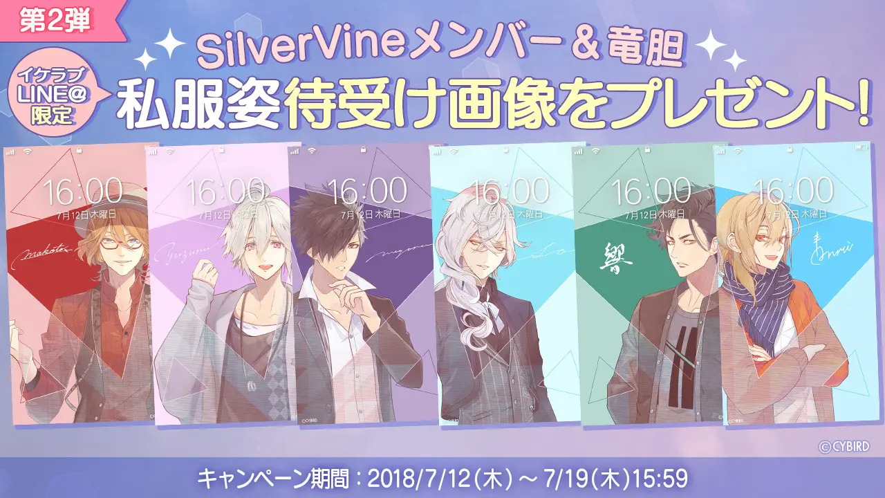 イケラブ公式LINE@限定で、私服姿のおしゃれな待受け画像がGETできるよ!第2弾は【SilverVineメンバー&竜胆】です♪キャンペーン期間中にLINE@からGETしてね!