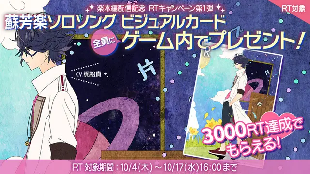 【11月配信決定】★蘇芳楽が恋のお相手として選択可能に!記念として、RTキャンペーンも実施中★
