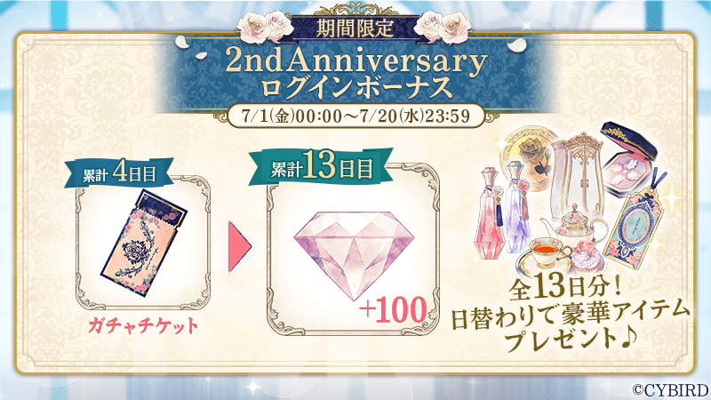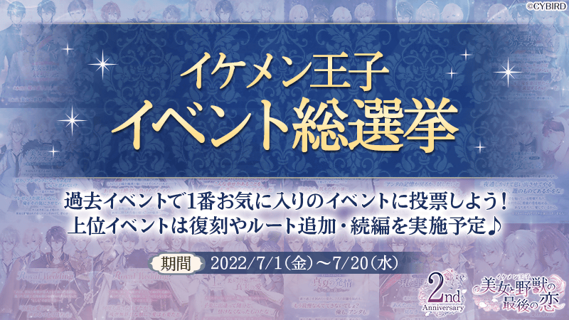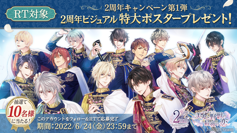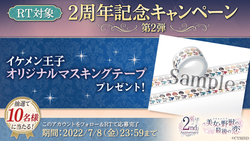 『イケメン王子 美女と野獣の最後の恋』の公式Twitter(@CYikemenprince)では2周年を記念したキャンペーンを開催いたします!