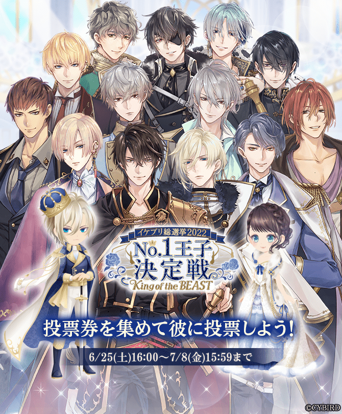 本アプリにおいて2回目となるキャラクター総選挙「イケプリ総選挙2022 King of the BEAST~No.1王子決定戦~」を、6月25日(土)より開催します。