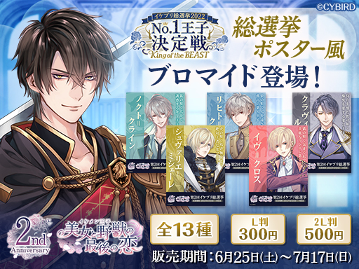 「イケプリ総選挙2022 King of the BEAST~No.1王子決定戦~」の開催を記念し、総選挙ポスター風ブロマイドが「ローソンプリント」に登場します。お気に入りの彼のブロマイドを手に入れて、ぜひ総選挙を応援してください。