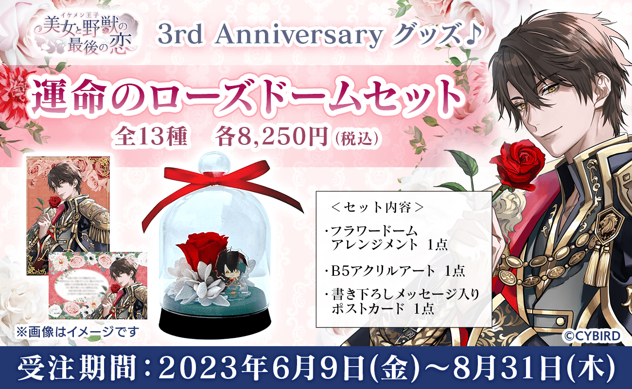 『イケメン王子 美女と野獣の最後の恋』3rd Anniversary記念♪ 「3rd Anniversary 運命のローズドームセット」がnademaにて予約が開始です!