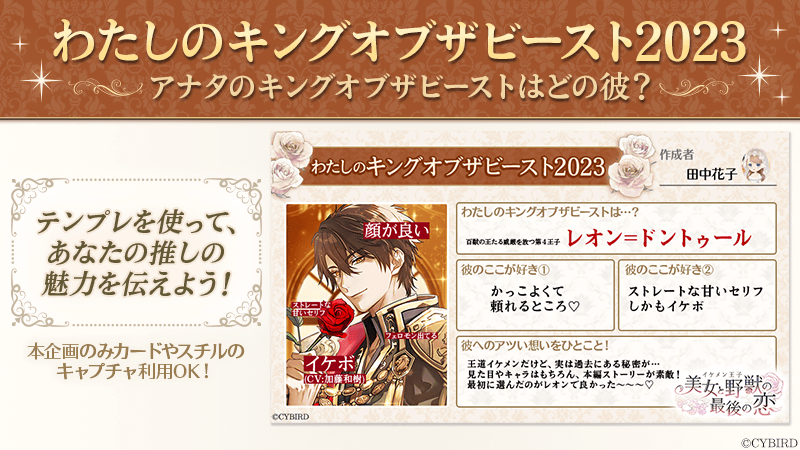 今年もキャラクター総選挙「イケプリ総選挙2023 野獣が叶える美女の夢~King of the BEAST~」を、6月25日(日)より開催します。