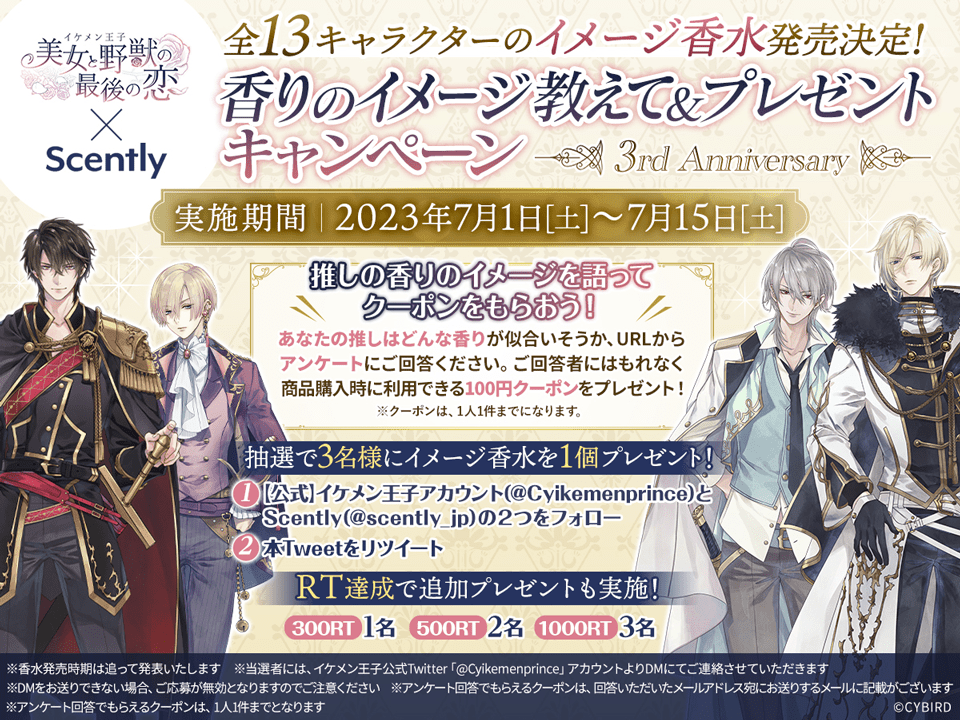 【3周年記念グッズ】「イケメン王子 美女と野獣の最後の恋」×「Scently」王子イメージ香水発売決定!