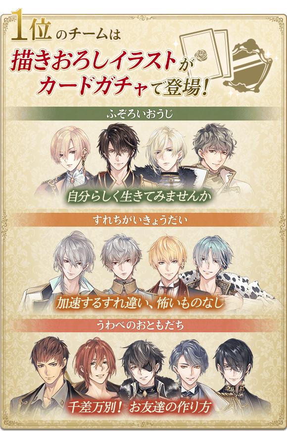 1位に輝いたチームは、描き下ろしのイラストがカードガチャで登場します。