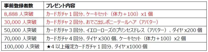 『イケメン王子 美女と野獣の最後の恋』の公式サイト、公式LINE、公式Twitter、イケメンシリーズファンクラブのいずれかにおいて事前登録頂いたお客様に向けたキャンペーンを開催中です。事前登録者数に応じて総計で、10回分のガチャチケットや、5000円以上相当の豪華アイテムがもらえる事前登録キャンペーンとなります。・事前登録者数 プレゼント内容