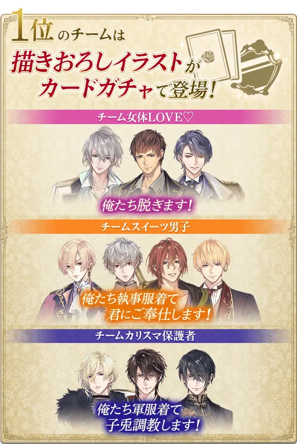 1位に輝いたチームは、描き下ろしのイラストがカードガチャで登場します。