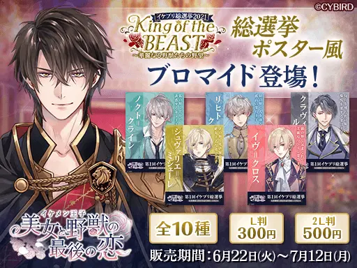 『イケメン王子 美女と野獣の最後の恋』は、2021年7月1日(木)でサービス開始より1周年を迎えることを記念し、6月29日(火)より「イケプリ総選挙2021 King of the BEAST~華麗なる野獣たちの野望~」の開催を決定しました。