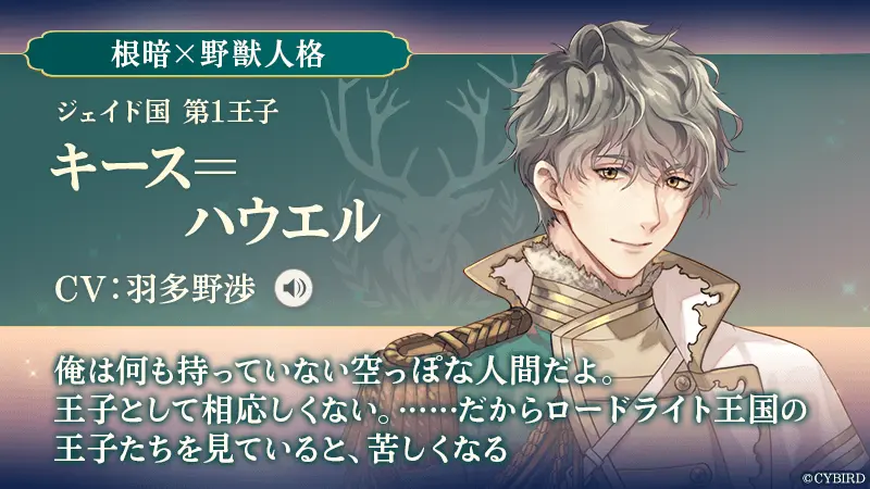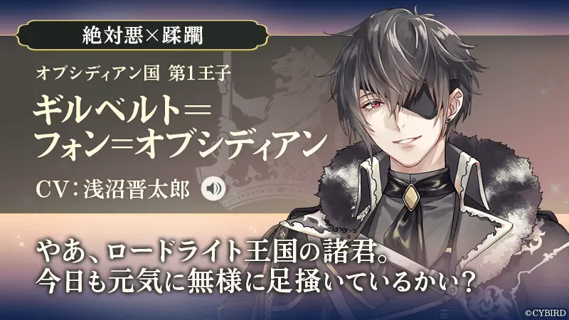 『イケメン王子 美女と野獣の最後の恋』は、第2章に登場する3名の新キャラクター、「ギルベルト=フォン=オブシディアン(CV. 浅沼 晋太郎)」、「キース=ハウエル(CV. 羽多野 渉)」、「シルヴィオ=リッチ(CV. 佐藤 拓也)」を公開しました。