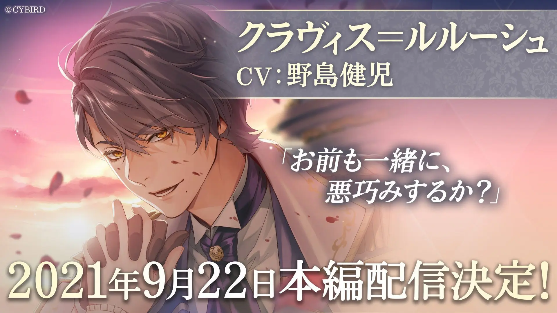 「クラヴィス=ルルーシュ(CV:野島 健児)」の本編配信が、9月22日(水)に決定しました。「クラヴィス=ルルーシュ」の本編配信をもって、第1章は完結します。また、本編には新キャラクター「ギルベルト=フォン=オブシディアン」、「シルヴィオ=リッチ」、「キース=ハウエル」が登場します。