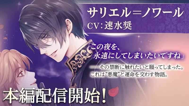 『イケメン王子 美女と野獣の最後の恋』は、第2章最初の本編となる「サリエル=ノワール(CV:速水 奨)」の本編ストーリーを、本日12月20日(月)より配信開始しました。