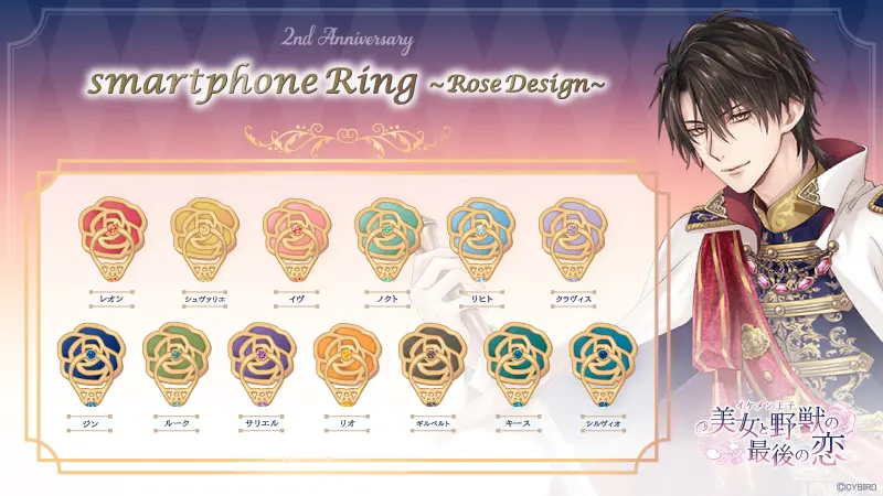 『イケメン王子 美女と野獣の最後の恋』の2周年を記念して、アクセサリーブランド「Liefel」との2周年記念コラボグッズ、指輪をイメージしたスマホリング全13種を販売します。