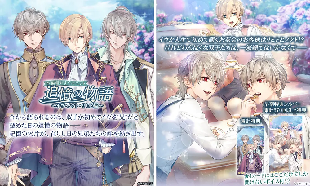 本編ストーリーボイス追加第2弾配信を記念して、アプリ内では本編進めようイベント「追憶の物語~イヴ・ノクト・リヒト編~」を、開催しています。