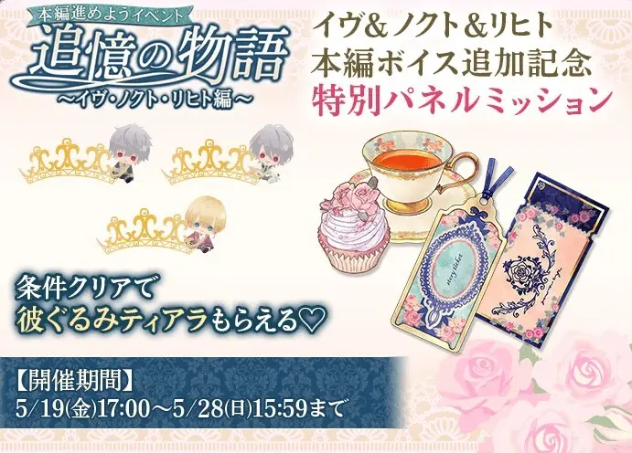 2023年5月19日(金)17:00~5月28日(日)15:59■イヴ&ノクト&リヒト本編ボイス追加記念特別パネルミッションを開催!