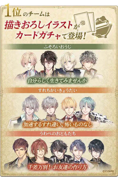 1位に輝いたチームは、描き下ろしのイラストがカードガチャで登場します。
