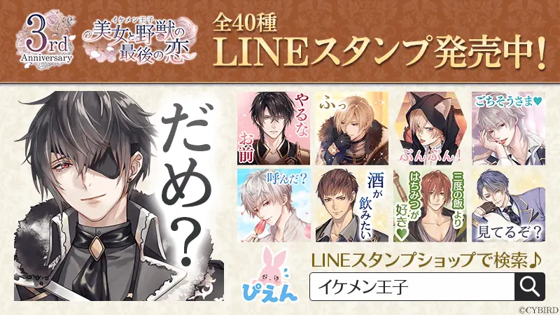 3周年を記念して、『イケメン王子 美女と野獣の最後の恋』のLINEスタンプ第2弾の発売が2023年7月3日(月)に決定!