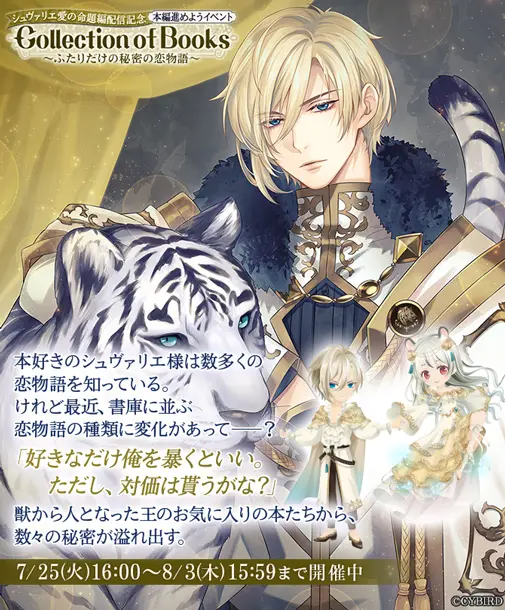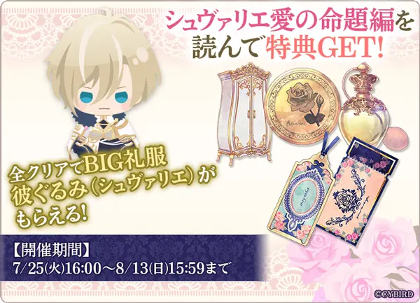 「シュヴァリエ=ミシェーレ」愛の命題編の配信を記念して、アプリ内では本編進めようイベント「シュヴァリエ愛の命題編配信記念 Collection of Books~ふたりだけの秘密の恋物語~」を、開催しています。
