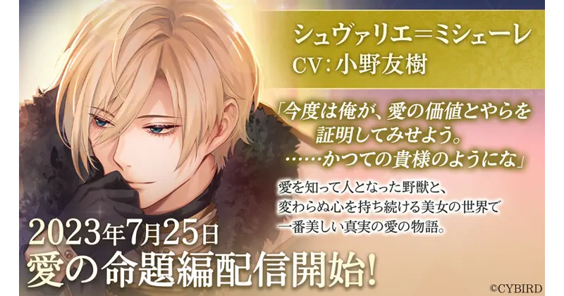 『イケメン王子 美女と野獣の最後の恋』は、「シュヴァリエ=ミシェーレ(CV: 小野 友樹)」の愛の命題編を、本日2023年7月25日(火)より配信開始しました。