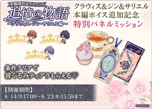 本編ストーリーボイス追加第3弾配信を記念して、アプリ内では本編進めようイベント「追憶の物語~クラヴィス・ジン・サリエル編~」を、開催しています。