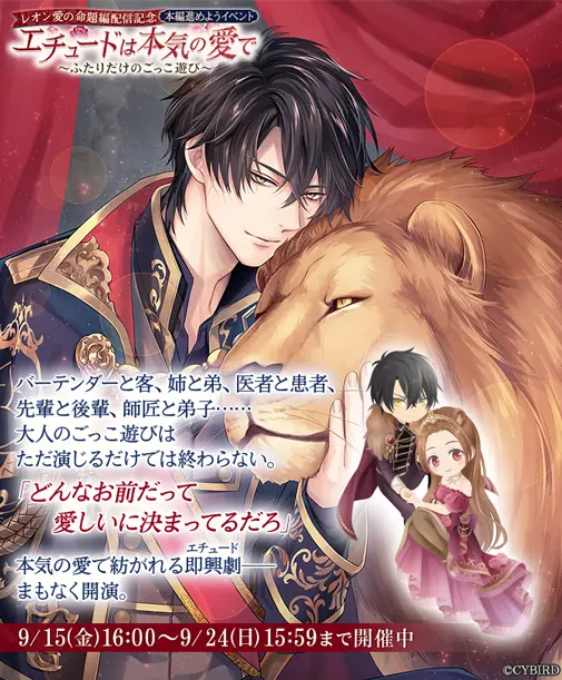 「レオン=ドントゥール」愛の命題編配信を記念して、アプリ内では本編進めようイベント「レオン愛の命題編配信記念エチュードは本気の愛で~ふたりだけのごっこ遊び~」を、開催しています。